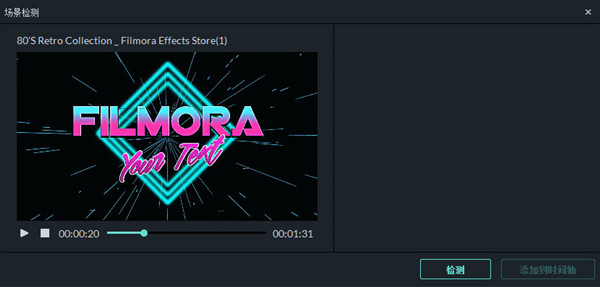 5、使用“場景檢測”功能分割片段:右鍵單擊“媒體庫”面板中的片段,然后選擇“場景檢測”選項。 在彈出窗口中,單擊“檢測”按鈕。 場景檢測可能需要一些時間。 檢測過程完成后,選擇不需要的場景,按Delete鍵將其刪除。