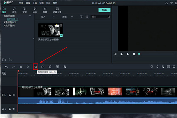 2、之后就可以開始進(jìn)行水印的去除工作了,直接在時間軸的上方功能欄中選擇“裁剪和縮放”選項,你也可以使用“Alt+C”的快捷鍵打開此功能,如下圖所示: