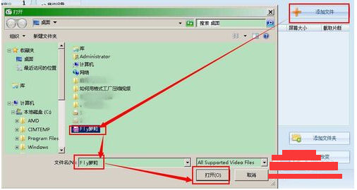 3、選擇添加文件,繼續(xù)打開窗口找到需要壓縮的視頻,點擊確定。