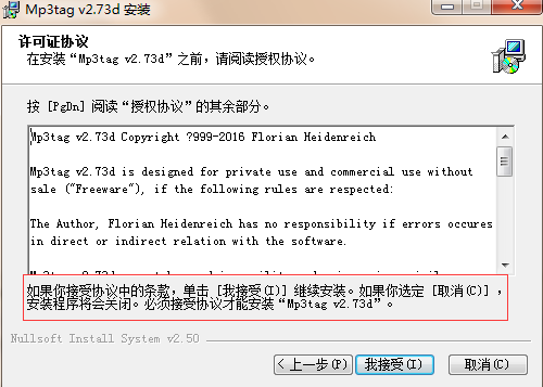 4.閱讀協(xié)議并選擇【我接受】,繼續(xù)安裝 Mp3tag