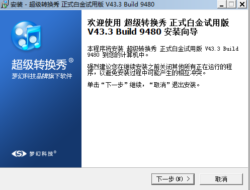 1.首先自該頁找到下載地址并下載超級(jí)轉(zhuǎn)換秀軟件包,下載后請(qǐng)先將.zip格式文件進(jìn)行解壓找到.exe格式文件雙擊運(yùn)行。運(yùn)行后出現(xiàn)如下界面截圖:在該界面小伙伴只需要直接單擊【下一步】按鈕繼續(xù)安裝即可;