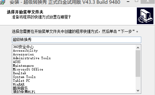 4.接下來跳轉(zhuǎn)如下截圖界面:該界面是可以設(shè)置超級(jí)轉(zhuǎn)換秀快捷方式的放置位置,小伙伴可根據(jù)自己習(xí)慣進(jìn)行設(shè)置該位置,設(shè)置完畢后繼續(xù)單擊【下一步】按鈕繼續(xù)安裝。