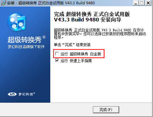 1).勾選 “運(yùn)行超級(jí)轉(zhuǎn)換秀白金版” 表示單擊【完成】后將直接打開該軟件;