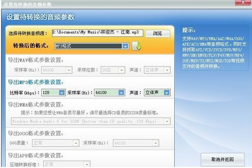 TOD,SDP,YUV等視頻文件的音頻并轉(zhuǎn)換,以上所有格式都可轉(zhuǎn)換為WAV/MP3/WMA/AAC/M4A/OGG/
