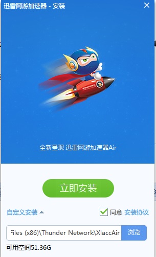 4、選定后點(diǎn)擊“立即安裝”。迅雷網(wǎng)游加速器的安裝過(guò)程大約需要3分鐘,請(qǐng)耐心等待