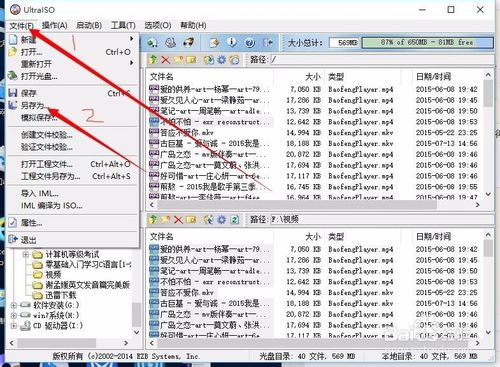 5、在刻錄到光盤(pán)之前首先得要將文件統(tǒng)一保存為ISO格式才能刻錄到光盤(pán)中,點(diǎn)擊左上角的文件選擇另存為,之后在保存的框框中點(diǎn)擊左邊選擇你要存儲(chǔ)的位置在文件名中輸入名稱(后綴.iso保留)保存類(lèi)型為標(biāo)志ISO文件,再點(diǎn)擊保存即可,這是正在轉(zhuǎn)換為ISO格式的文件。