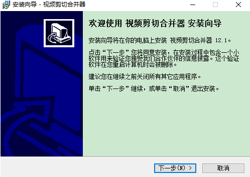 一、首先你需要在該頁找到下載地址處選擇任意地址將視頻剪切合并器軟件包下載至本地,下載后雙擊解壓找到包內(nèi)的.EXE格式程序并運行。如下:我們直接單擊【下一步】開始安裝。