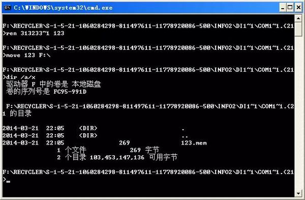 cd /d F:\RECYCLER\S-1-5-21-1060284298-811497611-11778920086-500\INFO2