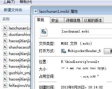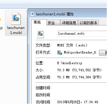4、例如這本mobi漫畫,原始大小70mb
