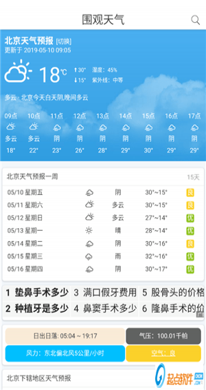 圍看天氣提供全國城市、區(qū)縣、鄉(xiāng)鎮(zhèn)一周內(nèi)天氣預(yù)報查詢,通過對本地天氣查詢可以了解到未來7天、15天天氣預(yù)報的詳細(xì)情況,包括溫度、降雨以及空氣質(zhì)量pm2.5的24小時天氣實時數(shù)據(jù),方便您出行以及生活!