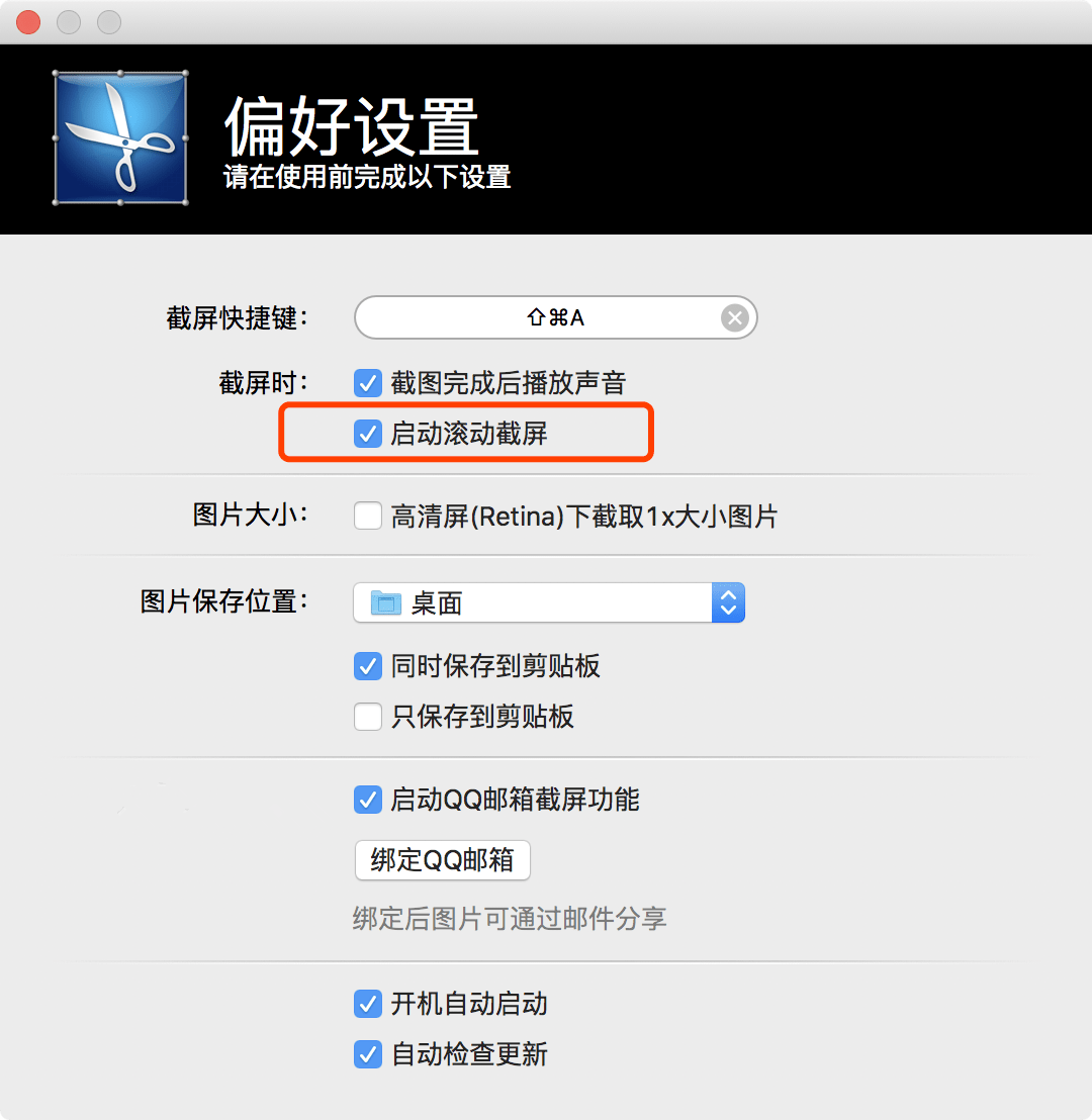 5、安裝完成就會(huì)自動(dòng)彈出“偏好設(shè)置”的按鈕,此時(shí)還暫時(shí)設(shè)置不了滾動(dòng)截圖,又是蘋(píng)果系統(tǒng)的安全機(jī)制搞的鬼