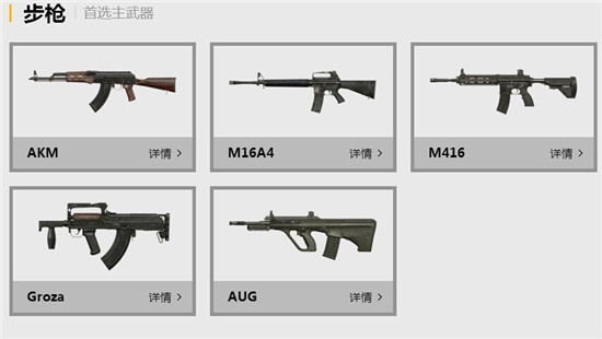 AKM、M16A4、Groza、AUG、M416、SCAR-L,選擇適合自己的步槍,這六把的確是不好排名的,有的是空投中獲得的,有的話直接減空投道具,這種武器都會(huì)稍微給力一下。常見的有4把武器,我們的排名就是M416>AKM>SCAR-L>M16A4。
