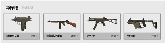 UZI、湯姆遜、UMP9、Vecrot,這四把都是很好撿到的武器,而且這個(gè)武器的傷害都是可以的,只有子彈比較少,沖鋒槍射速都是非??斓?,這四把非常好排名。UMP9>湯姆遜>UZI>Vector,這武器就是沖鋒槍了,適合是近戰(zhàn)使用,不過沖鋒缺點(diǎn)也比較明顯,除非你很會(huì)用,不然直接揀一把步槍要好于沖鋒槍的。
