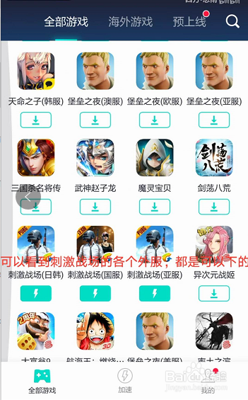 接下來打開UU,切換到全部游戲頁(yè)卡,往下拉就可以找到刺激戰(zhàn)場(chǎng)亞服,如下圖所示