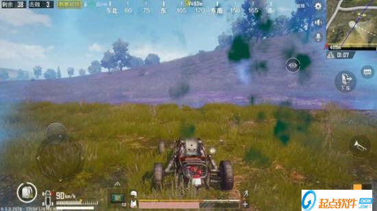 1、戰(zhàn)荒原找掩護(hù)沿路移動(dòng)開上載具逃離毒區(qū);
