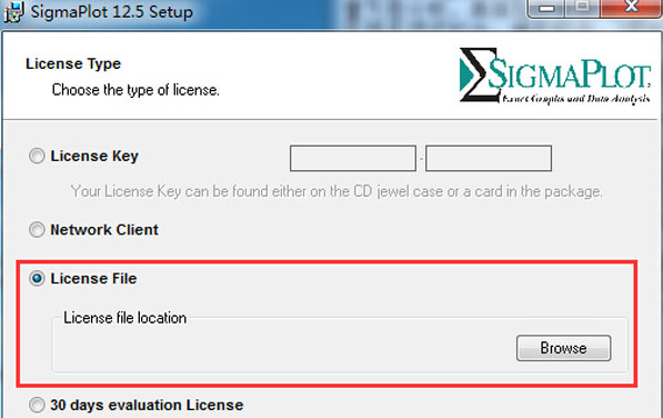 4、選擇“License File”,點擊“Browse”。