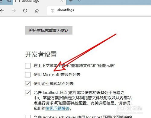4、這時(shí)就會(huì)打開edge瀏覽器的設(shè)置頁面,在頁面中看到“使用Microsoft兼容性列表”的設(shè)置項(xiàng)。
