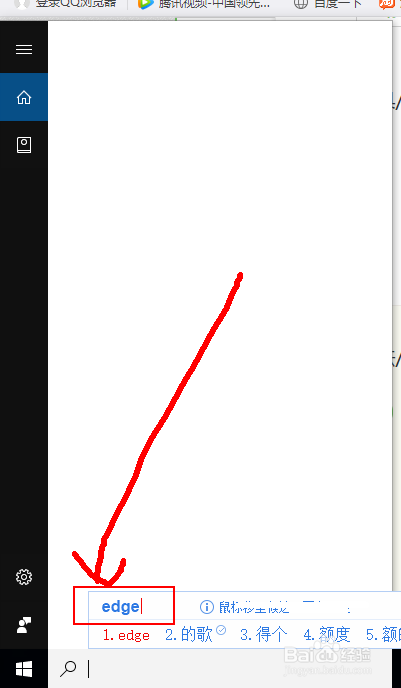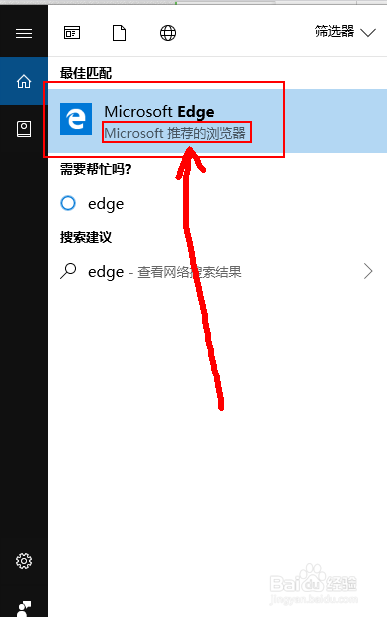 1、在開始菜單中輸入 Edge瀏覽器 ,然后就可以看到出現(xiàn)了Edge瀏覽器,它是Windows10系統(tǒng)中推薦使用的瀏覽器。