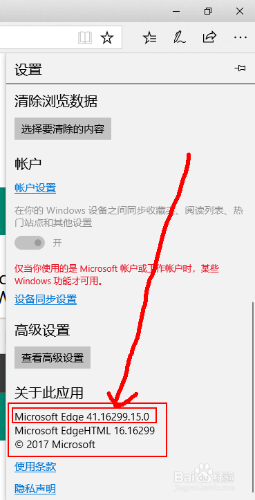 6、然后在當(dāng)前的頁面中拉倒最下面,就可以看到當(dāng)前Edge瀏覽器的版本信息了。