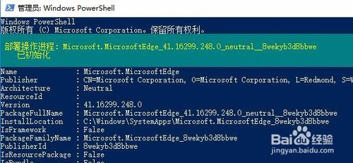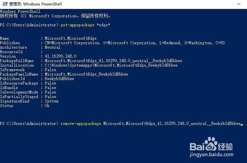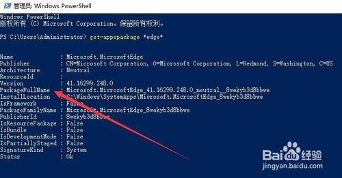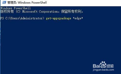 3、在打開的Windows Powershell窗口中,輸入命令get-appxpackage *edge*