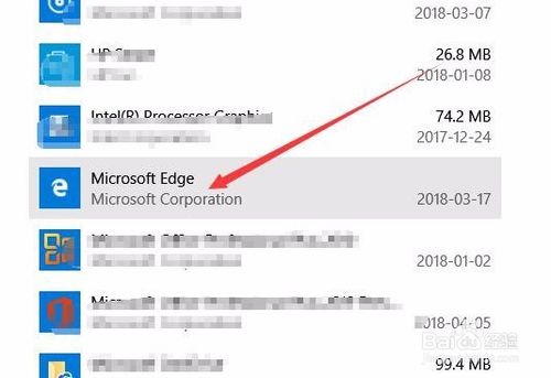 4、在右側(cè)的應(yīng)用列表中找到Edge瀏覽器的菜單項(xiàng)。