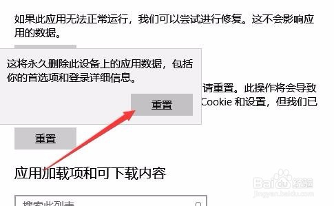 8、這時(shí)會(huì)彈出一下重置的警告窗口,直接點(diǎn)擊重置按鈕就可以了。