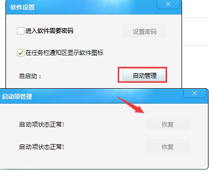 ②啟動(dòng)項(xiàng)沒(méi)有正常啟動(dòng)。打開(kāi)軟件--點(diǎn)擊軟件設(shè)置--啟動(dòng)管理--恢復(fù)。