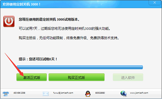 1 打開(kāi)試用版定時(shí)關(guān)機(jī)3000,在彈出的窗口中點(diǎn)擊【激活正式版】。
