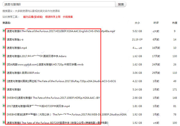 1、打開蜘蛛磁力搜索引擎后,直接輸入你要查找的關(guān)鍵字,如小編輸入速度與激情8,點(diǎn)擊搜索;