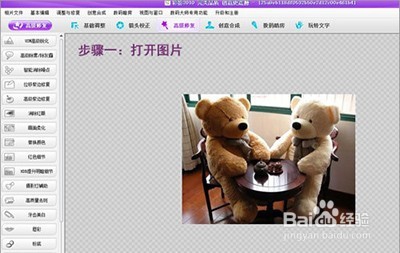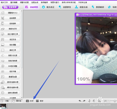 一、彩影如何打?。?br />首先我們點(diǎn)擊左下角的打開(kāi)按鈕,用我們這個(gè)軟件打開(kāi)你想要打印的圖片。其實(shí)我們完全可以直接使用這個(gè)軟件的打印命令打印照片,但將這軟件只當(dāng)圖片打印軟件用,顯然浪費(fèi)了它“中國(guó)第一圖像處理軟件”的美譽(yù)。