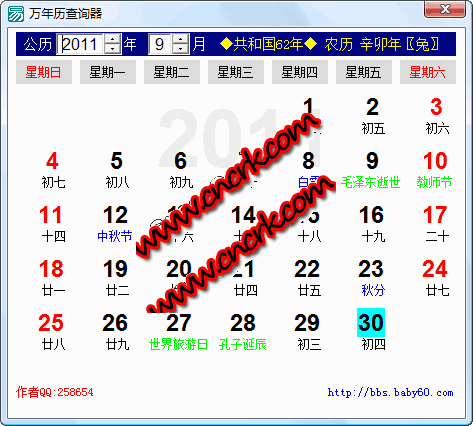 萬(wàn)年歷查詢(xún)器 V1.0 簡(jiǎn)體中文綠色免費(fèi)版 萬(wàn)年歷查詢(xún)器是一款符合國(guó)人習(xí)慣的萬(wàn)年歷查詢(xún)工具,該軟件不但能方便查詢(xún)節(jié)假日、黃道吉日、宜忌,還能精確的推算日期,幫您在出行、結(jié)婚時(shí)提前安排時(shí)間,而且方便易用,傻瓜式操作,是最具權(quán)威的在線(xiàn)萬(wàn)年歷查詢(xún)器。