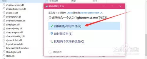 第二步:然后打開Lightroom CC 2019軟件的根目錄就把之前復制的注冊補丁,粘貼進去。記住是粘貼進去,不是直接拉進去。粘貼進去之后,會彈出替換,點擊替換就可以了。根目錄的意思就是:就是打開軟件的文件位置,里面是軟件運行的全部程序,就是粘貼進這里面。不懂的可以看視頻。