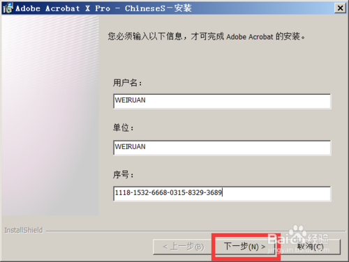 前兩個框可以隨便填,最后一個框填入序列號:1118-1532-6668-0315-8329-3689,如圖