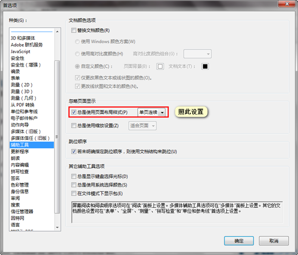 默認單頁連續(xù)頁面顯示編輯 -> 首選項 -> 一般(ctrl + k)-> 輔助工具 -> 忽略頁面顯示 -> (勾選總是使用頁面布局設置”,選擇單頁連續(xù) )