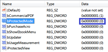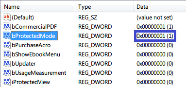 查看 bProtectedMode,默認為“1”。