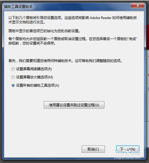 選擇“設置所有的輔助工具選項”(默認就是這個,就不用選了),按“下一步”