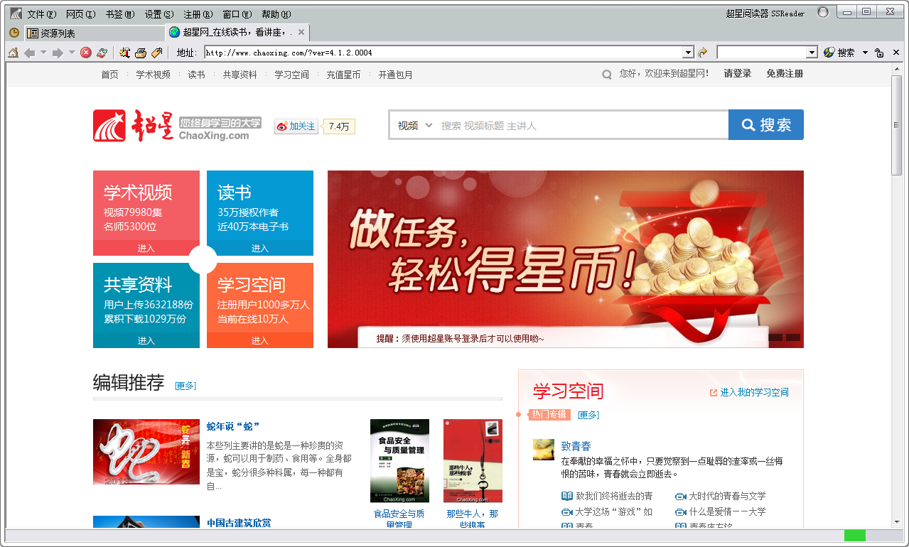 1.首先在另外一臺(tái)機(jī)器上面安裝超星4.01瀏覽器,選擇注冊(cè)-用戶登錄。