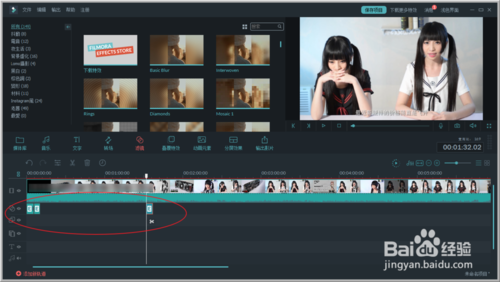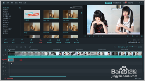 7、依次把濾鏡拖入到軌道上即可。