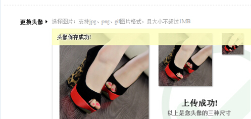 7、上傳照片成功后,我們就會(huì)獲得三種尺寸的頭像照片,不過(guò)要注意圖片不能太大,不能超過(guò)1M。