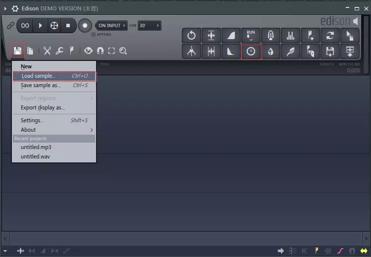 然后搜索插件,找到 Edison 插件,在新通道中打開,圖示即為變速變調(diào)處理按鈕。加載一個采樣作為示例。