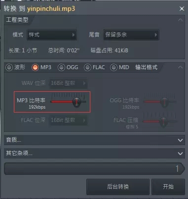 彈出設(shè)置框,調(diào)節(jié) MP3 比特率,也是左右滑動,點擊開始即可。