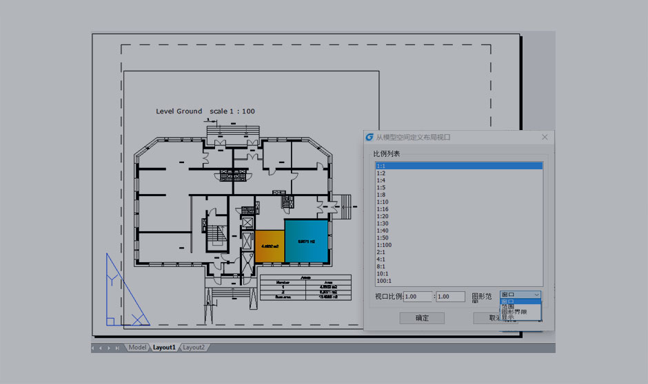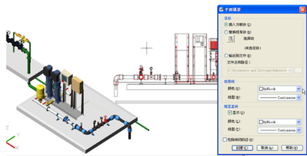 3、平面攝影(FLATSHOT):浩辰CAD在模型空間可以輕松生成三維模型的平面投影,并可以輸出成文件或直接以圖塊的形式插入到當(dāng)前圖中。