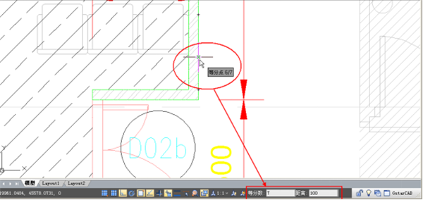 6、對象捕捉改進(jìn):當(dāng)打開等分捕捉和距端點(diǎn)捕捉時(shí),浩辰CAD2018狀態(tài)欄會顯示等分?jǐn)?shù)和距離輸入框,用戶無需打開捕捉對話框就可隨時(shí)調(diào)整等分?jǐn)?shù)和距端點(diǎn)的距離,操作更方便。