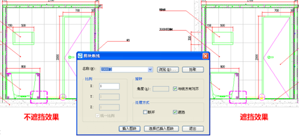5、圖塊斷線(BLOCKBREAK):可以在插入圖塊時(shí)自動打斷或遮擋下面的線或圖形,圖塊可自動與線對齊或隨意設(shè)置旋轉(zhuǎn)角度。