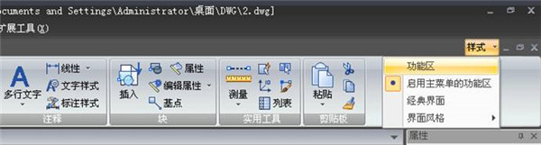 1、選擇“功能區(qū)”,可切換到Ribbon界面。