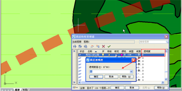2、透明度:當(dāng)圖形相互重疊時(shí),可通過設(shè)置透明度同時(shí)顯示前后的圖形,浩辰CAD2018中可根據(jù)需要設(shè)置圖層、填充、對象的透明度。