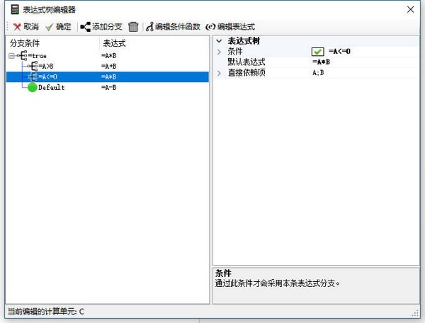 C單元引用A和B單元組成的公式,但不是簡單的引用,當(dāng)A大于某數(shù)時是一種公式,當(dāng)A小于某數(shù)時換另外一種公式,在我們的軟件中就可以用如下方式直觀地實現(xiàn):
