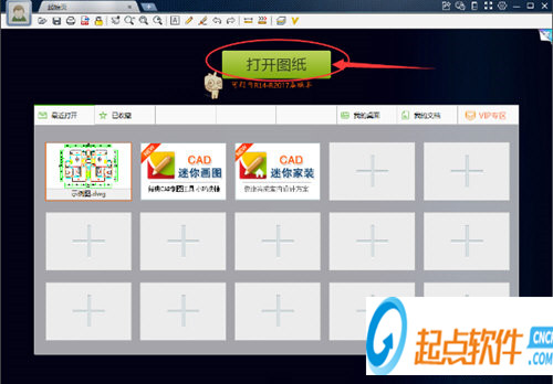 1、首先我們打開cad迷你看圖軟件,然后在其界面點擊“打開圖紙”并把想要轉(zhuǎn)換格式的圖紙?zhí)砑舆M來;