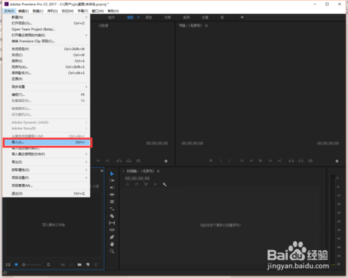 打開Pro CC軟件,點(diǎn)擊文件--導(dǎo)入,彈出選擇文件的窗口,我們選擇合適的視頻即可