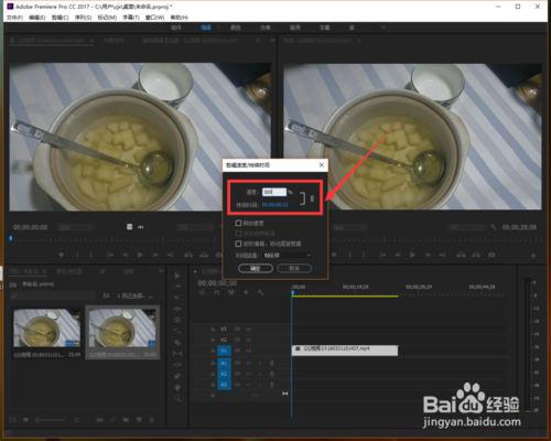 我們?cè)O(shè)置好視頻速度點(diǎn)擊確認(rèn)后,將鼠標(biāo)放在時(shí)間軸上面的視頻那里就會(huì)看得到該視頻的播放速度了。